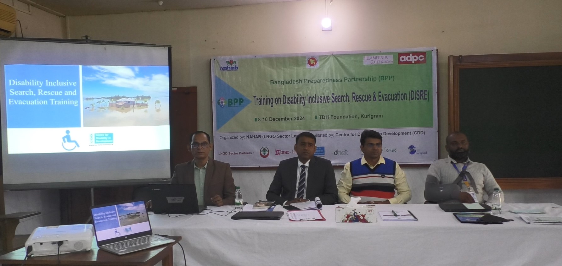 দুর্যোগ প্রবণ এলাকায় অক্ষমতা অন্তর্ভুক্ত অনুসন্ধান,উদ্ধার এবং উচ্ছেদ বা ডিজঅ্যাবিলিটি ইনক্লুসিভ সার্চ, রিসোর্চ এবং ইভেকুশন বিষয়ক তিন দিনব্যাপি প্রশিক্ষণ শুরু হয়েছে।