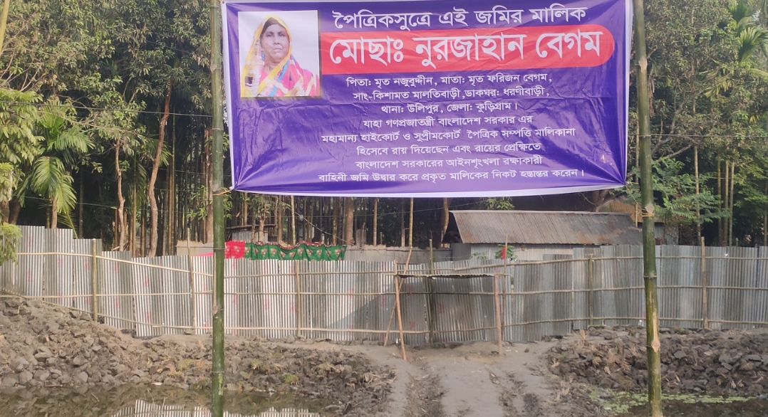 কুড়িগ্রাম জেলার উলিপুর উপজেলার ধরনীবাড়ি ইউনিয়নের মালতিবাড়ী গ্রামের স্থানীয় প্রভাবশালী মোঃ মেহেরজামালের দখলে থাকা দুই অংশে (১ একর২১ শতক ও ১৪ শতক) জমি আদালতের রায়ে প্রায় ১৮ বছর পরে ফিরে পেলেন জমির প্রকৃত মালিক মোছাঃ নুর জাহান বেগম।