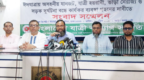 আজ ০২ এপ্রিল রবিবার সকালে রাজধানীর সেগুনবাগিছায় ঢাকা রিপোর্টার্স ইউনিটিতে “ঈদযাত্রায় অসহনীয় যানজট, পথে পথে যাত্রী হয়রানী, অতিরিক্ত ভাড়া আদায়ের নৈরাজ্য ও সড়ক দুর্ঘটনা” বন্ধের দাবীতে আয়োজিত এক সংবাদ সম্মেলনে সংগঠনের মহাসচিব মো. মোজাম্মেল হক চৌধুরী এ দাবি জানান।