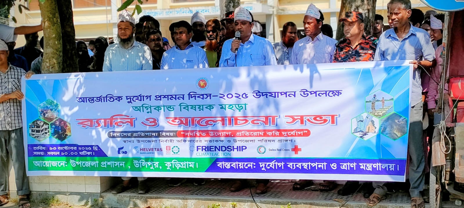“সমন্বিত উদ্যোগ, প্রতিরোধ করি দুর্যোগ”—এই প্রতিপাদ্যকে সামনে রেখে কুড়িগ্রামের উলিপুরে আন্তর্জাতিক দুর্যোগ প্রশমন দিবস উদযাপন করা হয়েছে।