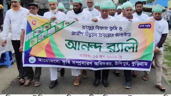 কুড়িগ্রামের উলিপুরে ৩ দিন ব্যাপী কৃষি মেলার উদ্বােধন করা হয়ছ। মঙ্গলবার দুপুরে রংপুর বিভাগ কৃষি ও গ্রামীণ উন্নয়ন প্রকল্পের আওতায়, উপজেলা কৃষি সম্প্রসারণ অধিদপ্তরের আয়ােজনে উপজেলা পরিষদ চত্বর থেকে একটি আনন্দ র্যালী বের হয় পরিষদ চত্বর প্রদক্ষিণ করে। পরে উপজেলা পরিষদ হলরুমে এক আলােচনা ইউএনও শােভন রাংসা’র সভাপতিত্বে অনুষ্ঠিত হয়। এতে অতিথি হিসেবে বক্তব্য রাখেন, উলিপুর পৌরসভার মেয়র মামুন সরকার মিঠু, সিনিয়র উপজেলা মৎস্য অফিসার তারিফুর রহমান সরকার, যুদ্ধাহত বীর মুক্তিযাদ্ধা গােলাম মােস্তফা, উপজেলা কৃষক প্রতিনিধি পার্থ সারথী সরকার। স্বাগত বক্তব্য রাখেন, উপজেলা কৃষি অফিসার কৃষিবিদ মাঃ মােশারফ হােসেন। অন্যান্যর মধ্য বক্তব্য রাখেন, উপ-সহকারী কৃষি কর্মকর্তা আবু সুফিয়ান প্রমুখ। এসময় উপস্তিত ছিলেন, কৃষক সহ বিভিন শ্রণিপেশার মানুষজন। শেষে উপজেলার এক হাজার ৫’শ ৫০ জন ক্ষুদ্র ও প্রান্তিক কৃষককে ৫ কেজি ধান বীজ, ১০কজি ডিএপি ও ১০ কৃজি এমওপি সার বিতরণর উদ্বাধন করা হয়।