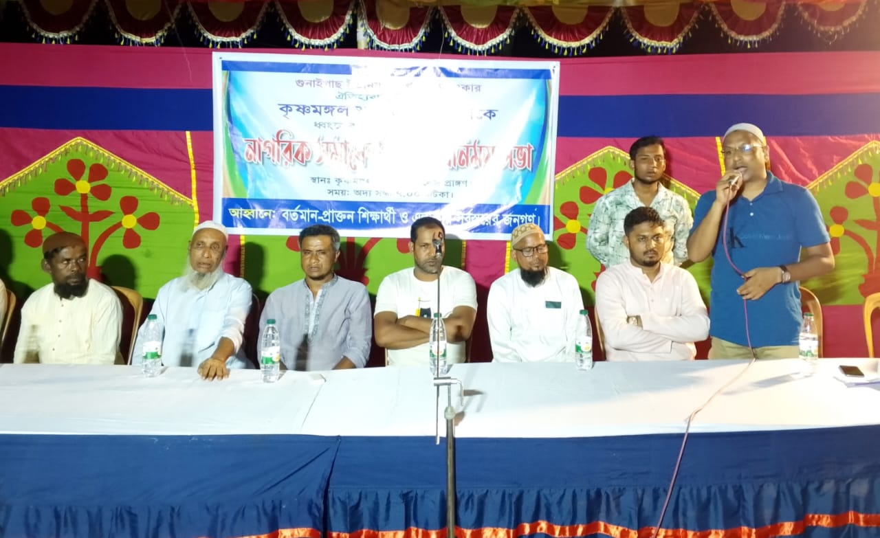 শুক্রবার (৬ সেপ্টেম্বর) রাতে বর্তমান-প্রাক্তন শিক্ষার্থী ও সর্বস্তরের জনগণের আয়োজনে কৃষ্ণমঙ্গল স্কুল এন্ড কলেজ চত্বরে নাগরিক সমাবেশ ও মতবিনিময় সভা অনুষ্ঠিত হয়। এতে বক্তব্য রাখেন- আব্দুস সবুর, আশরাফুল আলম চিশতি শাহীন, রফিকুল ইসলাম আনছারি, হাবিবুর রহমান হাবিব, বিপ্লব আনছারি প্রমুখ।