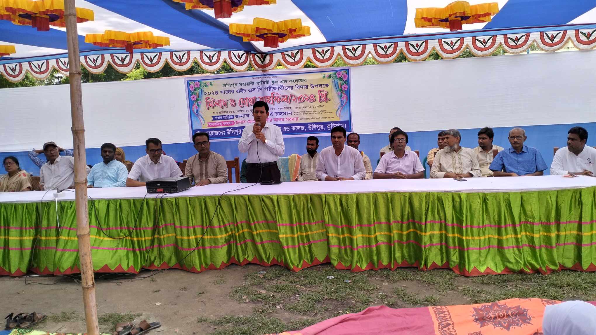 কুড়িগ্রামের উলিপুর মহারাণী স্বর্ণময়ী স্কুল এন্ড কলেজের ২০২৪ সালের এইচ এস সি পরীক্ষার্থীদের বিদায় উপলক্ষে মিলাদ ও দোয়া মাহফিল অনুষ্ঠিত হয়েছে। বৃহস্পতিবার দুপুরে কলেজ মাঠে বিদায় উপলক্ষে এক আলোচনা সভা ভারপ্রাপ্ত অধ্যক্ষ জাহাঙ্গীর আলম সরদারের সভাপতিত্বে অনুষ্ঠিত হয়। প্রধান অতিথি হিসেবে বক্তব্য রাখেন, উপজেলা নির্বাহী কর্মকর্তা আতাউর রহমান। প্রভাষক আব্দুল মালেকের সঞ্চালনায় অন্যান্যের মধ্যে বক্তব্য রাখেন, উপজেলা মাধ্যমিক শিক্ষা কর্মকর্তা মুহা. মাহতাব হোসেন, প্রভাষক স ম আল মামুন সবুজ প্রমূখ। এ সময় কলেজের শিক্ষক-শিক্ষিকা, অভিভাবকবৃন্দ, শিক্ষার্থী ও পরীক্ষার্থীরা উপস্থিত ছিলেন।