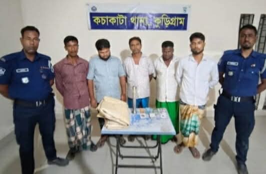 কুড়িগ্রামের প্রস্তাবিত কচাকাটা উপজেলার বলদিয়া ইউনিয়নের দক্ষিণ বলদিয়া পালপাড়া গ্রামে গতকাল সোমবার রাত ৩ ঘটিকায় নিয়োমিত অভিযানে জনৈক মোহাম্মদ আজিতুল্লাহ এর বসত বাড়ির রান্না ঘরের ভিতরে জুয়া খেলা চলাকালীন অবস্থায় জুয়া খেলার আসর থেকে ৬০৫০ (ছয় হাজার পঞ্চাশ) টাকাসহ আটক করা হয়। গ্রেফতারকৃতগন হলেন আব্দুল আউয়াল (৪৪), লিটন মিয়া (৩৫), আনসার আলী (৪০), রফিকুল ইসলাম (৩৩), শাহাজামাল সরকার (৩০)।