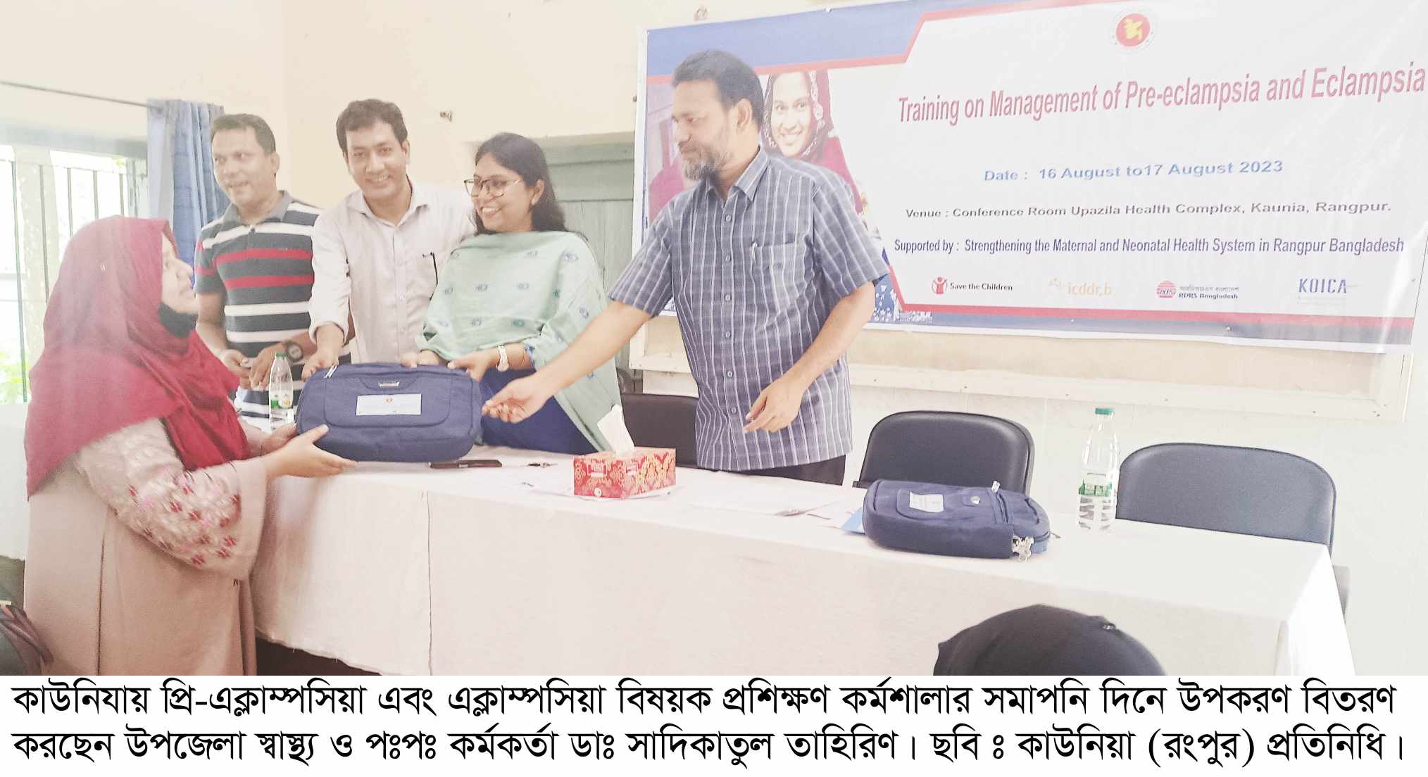 কোরিয়ান ইন্টারন্যাশনাল কো-অপারেশন এজেন্সী এর অর্থায়নে সেভ দ্যা চিলড্রেন এর কারিগরি সহায়তায় আরডিআরএস বাংলাদেশ বাস্তবায়নে প্রি-এক্লাম্পসিয়া এবং এক্লাম্পসিয়া বিষয়ক ২দিন ব্যাপী প্রশিক্ষণ কর্মশালা কাউনিয়া উপজেলা স্বাস্থ্য কমপ্লেক্সে বৃহস্পতিবার সমাপ্ত হয়।