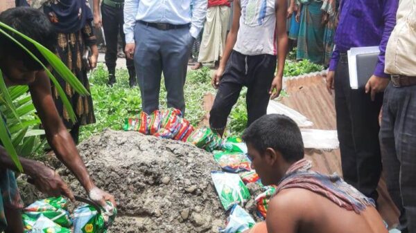 জহির রায়হান কাউনিয়া (রংপুর) প্রতিনিধিঃ কাউনিয়ায় ভ্রাম্যমান আদালত পরিচালনা করে বৃহস্পতিবার দুপুরে ভেজাল সার রাখার দায়ে তকিপল হাটের মেসার্স মায়ের দোয়া সার ঘরের ৫ হাজার টাকা ও ব্রেন্টের বাজারের মেসার্স মজনু সার ঘরের ২ হাজার টাকা জরিমানা করা হয়েছে। উপজেলা নির্বাহী অফিসার মোঃ মহিদুল হক ভ্রাম্যমান আদালত পরিচালনা করে এ জরিমানা করেন। এসময় উপস্থিত ছিলেন উপজেলা কৃষি অফিসার মোছাঃ শাহানাজ পারভীন, উপজেলা কৃষি সম্প্রসারণ কর্মকর্তা কল্লোল কিশোর সরকার প্রমূখ। পরে জনসম্মুখে ভেজাল সার মাটিতে পুতে রাখা হয়েছে।