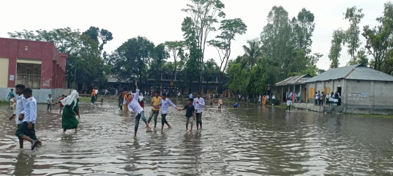 শিক্ষাপ্রতিষ্ঠান খোলা থাকলেও শিক্ষার্থীরা শ্রেণিকক্ষ ছেড়ে মাঠে নামতে পারছে না। জলাবদ্ধতার শ্রেণিকক্ষে যাতায়াতের সময় শিক্ষার্থীরা অনেকেই পা পিছলে পড়ে যায় । এতে নোংরা হয় তাদের জামা-কাপড় ভিজে যায় বই খাতা।