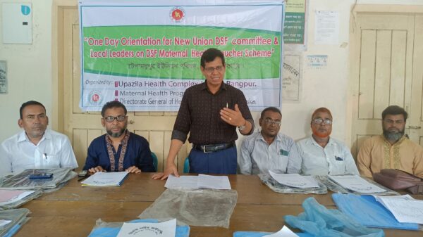 জহির রায়হান কাউনিয়া( রংপুর) প্রতিনিধিঃ-রংপুরের কাউনিয়ায় গরীব ও দু:স্থ মহিলাদের গর্ভকালীন প্রসবকালীন ও প্রসব পরবর্তী সেবা গ্রহনের চাহিদা বাড়িয়ে মাতৃ মৃত্যুর হার কমানোর লক্ষ্যে উপজেলা মাতৃস্বাস্থ্য ভাউচার স্কীম (ডিএসএফ) প্রকল্পের ওরিয়েন্টেশন সভা বুধবার দুপুরে উপজেলার টেপামধুপুর ইউনিয়ন পরিষদ হলরুমে (ডিএসএফ) এর আয়োজনে অনুষ্ঠিত হয়। টেপামধুপুর ইউনিয়ন পরিষদের প্যানেল চেয়ারম্যান মশিউর রহমান টেককা সভাপতিত্বে প্রধান অতিথি উপজেলা স্বাস্থ্য কর্মকর্তা ডাঃ মোঃ মীর হোসেন আরও বক্তব্য রাখেন উপজেলা পরিবার পরিকল্পনা কর্মকর্তা মোঃ সাহীদুল ইসলাম এ সময় উপস্থিত ছিলেন ইউপি সচিব রনজিৎ সরকার টেপামধুপুর ইউপি সদস্য ইউনুস আলী, আঃ মতিন প্রধান শিক্ষক মোঃ তাজুল ইসলাম , স্বাস্থ্য পরিদর্শক ইনচার্জ প্রিয়তোষ ভট্টাচার্য, সহকারী স্বাস্থ্য পরিদর্শক রতন কুমার ভট্টাচার্য, পরিসংখ্যান বিদ মোঃ রায়হান প্রামানিক প্রমুখ।