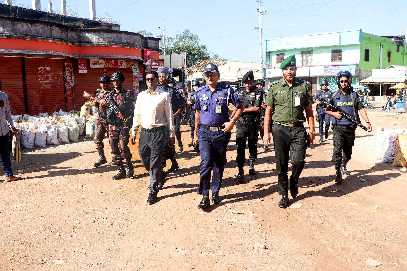 বৃহস্পতিবার (২ নভেম্বর) জেলার বিভিন্ন এলাকা ঘুরে যৌথবাহিনীর টহল দেখা গেছে।