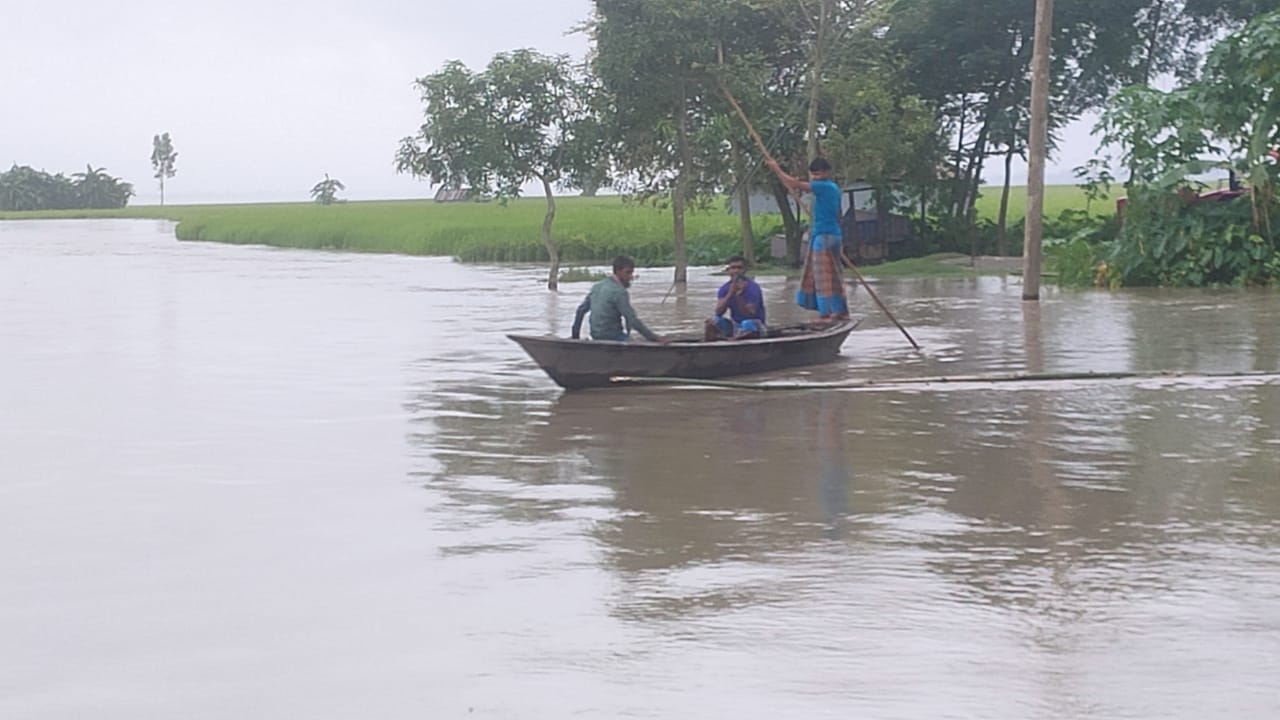 টানা বৃষ্টি ও উজান থেকে নেমে আসা পানিতে কুড়িগ্রামের ধরলা,দুধকুমার ও ব্রহ্মপুত্র নদের