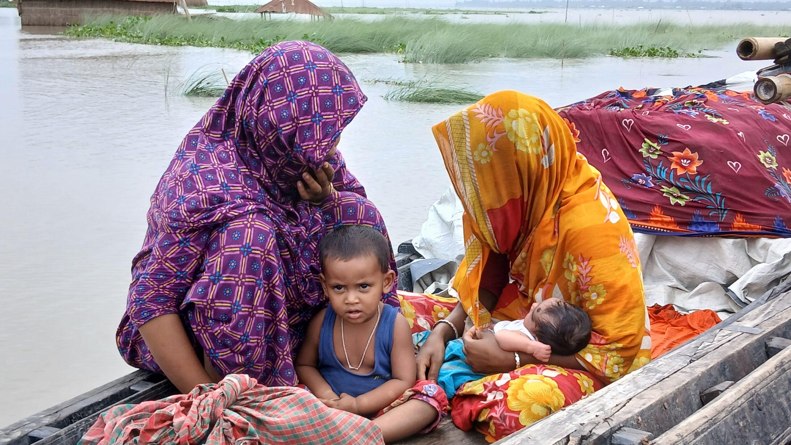 বেগমগন্বাজের পুর্ববালাডোবার চরে ৫ দিন আগে ভুমিষ্ট হওয়া কন্যা সন্তান নিয়ে নৌকায় অবস্থান করছেন মনছুর আলীর স্ত্রী মাজেদা বেগম। সাথে রয়েছে আরেক শিশু সন্তানসহ প্রতিবেশি এক নারী। মাজেদা বেগম জানান, সন্তান জন্ম দেয়ার দুইদিন পর ঘর-বাড়িতে পানি উঠেছে। সন্তানসহ উচু জায়গায় আত্মীয়র বাড়িতে চলে যাবেন বলে জানান তিনি।