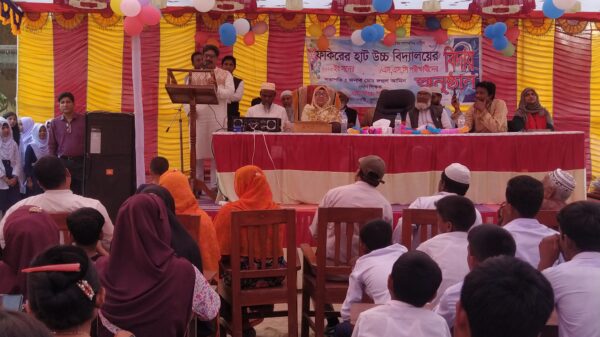রবিবার দুপুরে ফকিরের হাট উচ্চ বিদ্যালয়ের মাঠে স্কুলের আয়োজনে এস,এস,সি২০২৩ সালের পরিক্ষার্থীদের বিদায় অনুষ্ঠান অনুষ্ঠিত হয়। এ উপলক্ষে স্কুলের প্রধান শিক্ষক মোঃ রুহুল আমিনের সভাপতিত্বে আলোচনা সভা অনুষ্ঠিত হয়। এতে প্রধান অতিথি হিসেবে উপস্থিত ছিলেন উপজেলা পরিষদের চেয়ারম্যান রুকুনুজ্জামান শাহিন, বিশেষ অতিথি উপজেলা পরিষদের ভাইস চেয়ারম্যান মোছাঃ আসমা বেগম, উপজেলা মাধ্যমিক শিক্ষা কর্মকর্তা আবু তাহের প্রমুখ উপস্থিত ছিলেন ।বক্তব্য রাখেন, বীর মুক্তি যোদ্ধা মোসলেম উদ্দিন, শিক্ষাথী মোছ: আখি আক্তার, ফেরদৌসী খাতুন, বিদায়ী শিক্ষাথী দরদী খাতুন প্রমুখ। পরে বিদায়ী শিক্ষার্থীদেরকে উপহার দেয়া হয়।