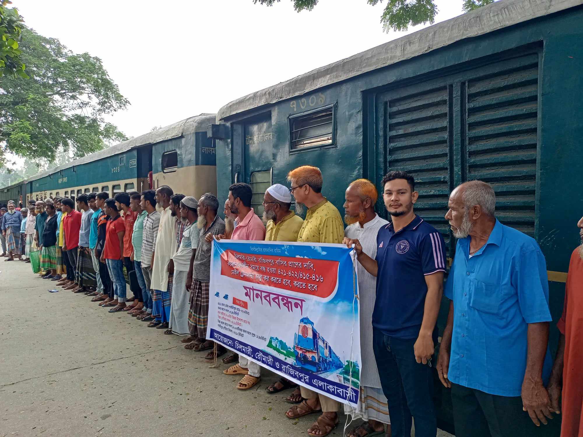 কুড়িগ্রামের চিলমারীতে মেইল ট্রেন চালুর ও রেলপথ মেরামতের দাবিতে মানববন্ধন করেছেন সকল স্থরের মানুষ।