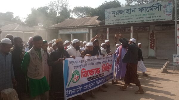 আজ শুক্রবার জুম্মার নামাজ শেষে ইসলামী আন্দোলন বাংলাদেশের চিলমারী উপজেলা শাখার আয়োজনে থানাহাট বাজার জামে মসজিদ থেকে একটি বিক্ষোভ মিছিল বের হয়ে উপজেলার গুরুত্বপূর্ণ সড়ক প্রদক্ষিণ শেষে জামে মসজিদ প্রাঙ্গণে এসে শেষ হয়। এসময় বক্তব্য রাখেন, উপজেলা ইসলামী আন্দোলনের সভাপতি হাফেজ মাওলানা ওমর ফারুক, সাধারণ সম্পাদক হাফেজ মো. রুকুনুজ্জামান লিটন, মুজাহিদ কমিটির সভাপতি জামিউল ইসলাম প্রমূখ।