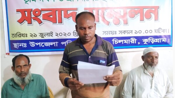 কুড়িগ্রামের চিলমারীতে চিলমারী ইউনিয়নের কড়াইবরিশাল এলাকায় অবৈধভাবে জোর পূর্বক জমি দখল ও প্রাণনাশের হুমকির প্রতিবাদে সংবাদ সম্মেলন করেছেন নুর নবী নামের এক ব্যক্তি। শুক্রবার বেলা ১১টায় চিলমারী প্রেসক্লাব কার্যালয়ে এ সংবাদ সম্মেলন করেন তিনি।