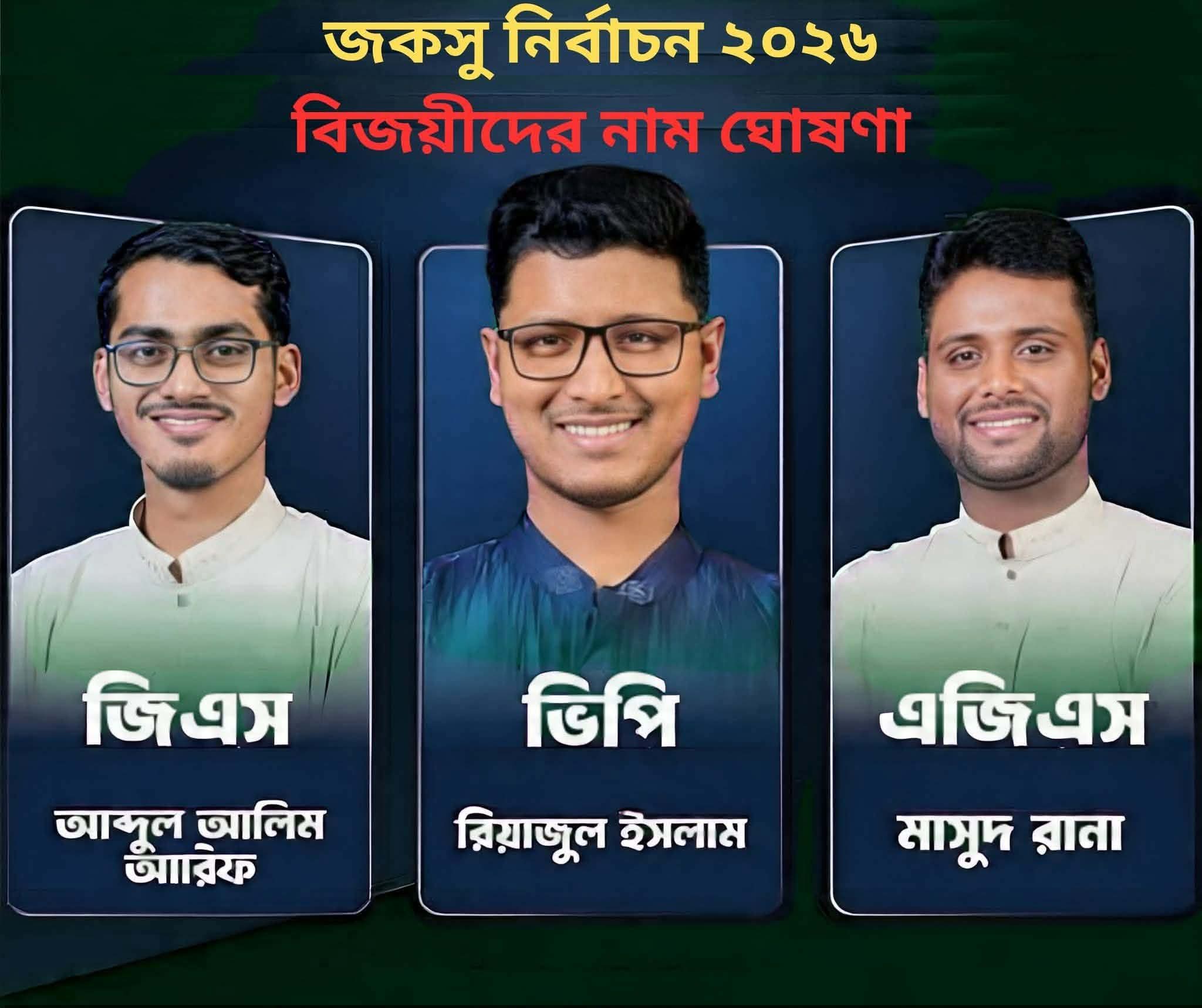 জগন্নাথ বিশ্ববিদ্যালয় কেন্দ্রীয় শিক্ষার্থী সংসদ (জকসু) নির্বাচনের ভোট গণনা সম্পন্ন হয়েছে। মোট ৩৯টি কেন্দ্রের ফল বিশ্লেষণে শীর্ষ তিনটি গুরুত্বপূর্ণ পদে ছাত্রশিবির সমর্থিত ‘অদম্য জবিয়ান ঐক্য’ প্যানেল বিজয়ী হয়েছে।