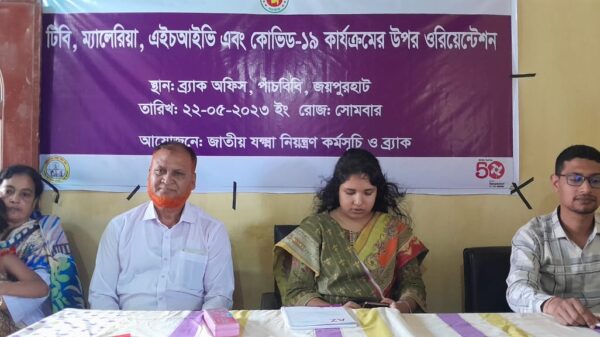জাতীয় যক্ষা নিয়ন্ত্রণ কর্মসূচি ও ব্র্যাকের অনুষ্ঠিত ওরিয়েন্টেশনে বক্তৃতা করেন – পাঁচবিবি উপজেলা স্বাস্থ্য কমপ্লেক্সের চিকিৎসক হোসনেআরা পারভীন, ব্র্যাকের এরিয়া সুপার ভাইজার প্রদীপ কুমার, মাঠকমী সাথী রানী প্রমূখ।