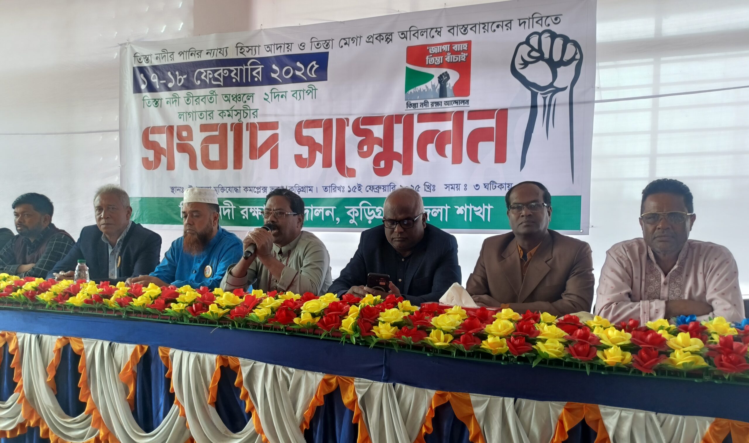 জাগো বাহে তিস্তা বাঁচাই, এই স্লোগানে তিস্তা নদীর পানির নায্য হিস্যা আদায় ও তিস্তা মেগা প্রকল্প অবিলম্বে বাস্তবায়নের দাবিতে কুড়িগ্রামে সংবাদ সম্মেলন অনুষ্ঠিত হয়েছে।