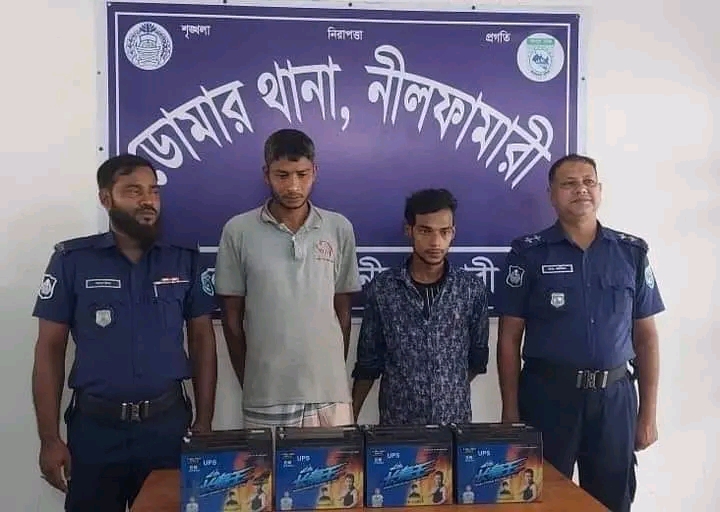 নীলফামারীর ডোমারে বাবার করা অটোরিকশার ব্যাটারি চুরির মামলায় ছেলে শাহিনুর ইসলাম (২৩) ও তার সহযোগী জুয়েল ইসলাম (৩০) নামের দুইজনকে গ্রেপ্তার করেছে পুলিশ।