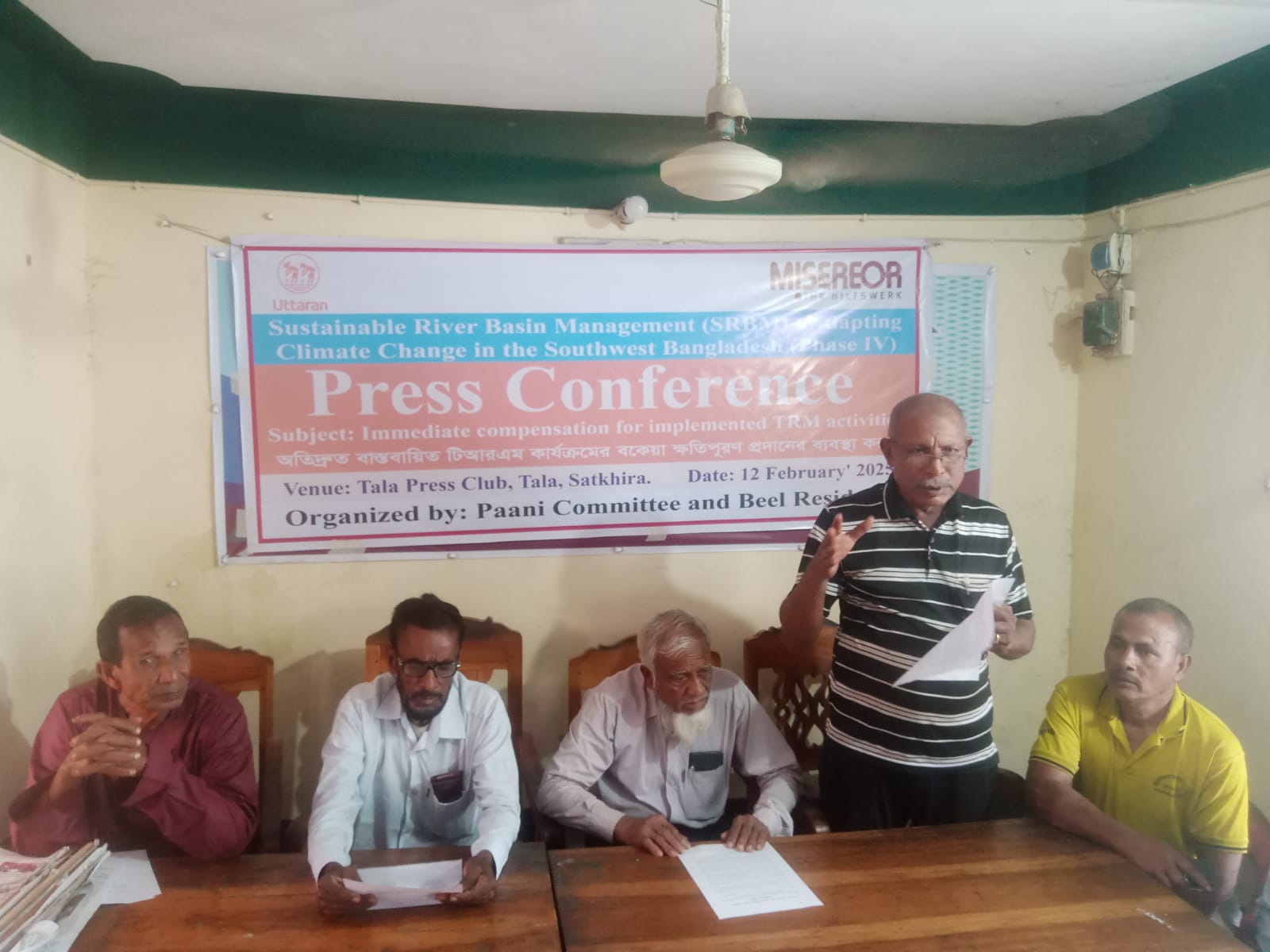 সাতক্ষীরার তালা উপজেলার কপোতাক্ষ নদ অববাহিকার পাখিমারা বিলে সরকার কর্তৃক বাস্তবায়িত জোয়ারাধার (টিআরএম)কার্যক্রমের বকেয়া ক্ষতিপূরণের দাবীতে সাংবাদিক সম্মেলন অনুষ্ঠিত হয়।