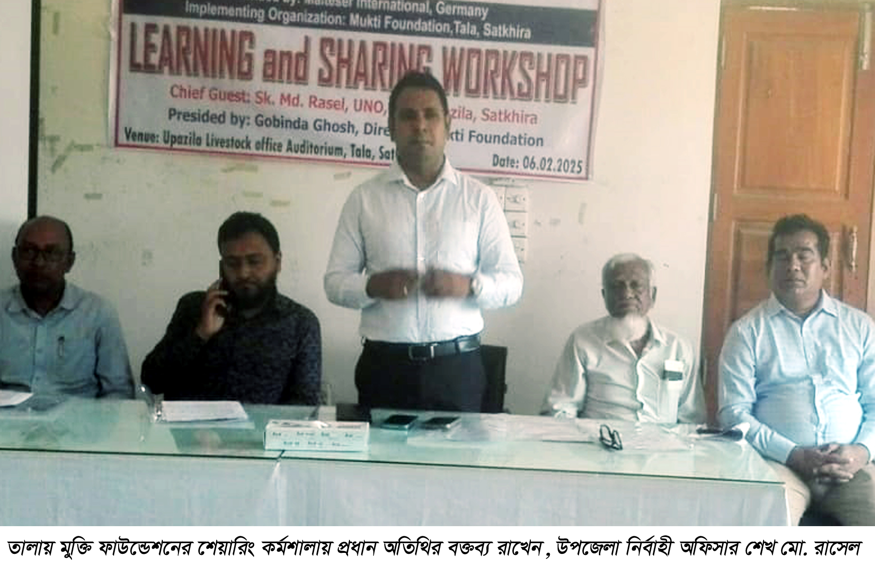 তালা উপজেলার নগরঘাটা, খলিশখালী ও খেশরা ইউনিয়নে জলবায়ু পরিবর্তনে জলাবদ্ধতা জনিত কারনে ক্ষতিগ্রস্থ ও প্রান্তিক ১ হাজার ১৫৭ পরিবারকে মুক্তি ফাউন্ডেশনের টুগেদার ২.০ কর্মসূচীর আওতায় সহযোগীতা প্রদান করা হয়েছে। ক্ষতিগ্রস্থদের সহযোগীতা প্রদান পরবর্তীতে সরকারি কর্মকর্তা, জনপ্রতিনিধি, সাংবাদিক ও স্টেকহোল্ডারদের অংশগ্রহনে তালায় লার্নিং এন্ড শেয়ারিং কর্মশালা অনুষ্ঠিত হয়েছে। বেসরকারি সংস্থা মুক্তি ফাউন্ডেশনের হোইফা প্রকল্পের আয়োজনে এবং দাতা সংস্থা ম্যালটিজার ইন্টারন্যাশনাল’র সহযোগীতায় অনুষ্ঠিকত কর্মশালায় সভাপতিত্ব করেন,মুক্তি ফাউন্ডেশনের নির্বাহী পরিচালক গোবিন্দ ঘোষ। প্রধান অতিথি হিসেবে বক্তব্য রাখেন, তালা উপজেলা নির্বাহী অফিসার শেখ মো. রাসেল। মাল্টিমিডিয়ার মাধ্যমে প্রকল্প কর্ম উপস্থাপন করেন, প্রকল্প সমন্বয়কারী জোসেফ মন্ডল।