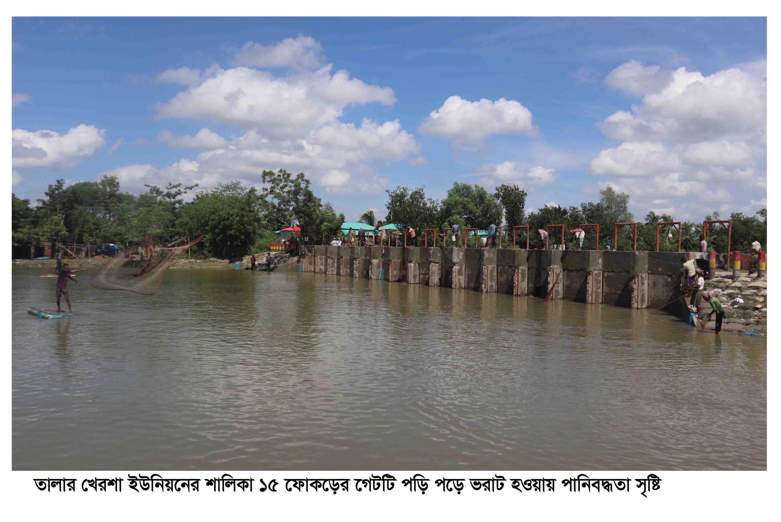 পানিতে ভাসছে কপোতাক্ষ নদী দ্বারা বেষ্টিত সাতক্ষীরার তালা উপজেলার খেশরা ইউনিয়ন। ৯টি ওয়ার্ডের সমন্বয়ে কপোতাক্ষ নদের তীর ঘেঁসে গড়ে উঠা ইউনিয়নটির ২১টি গ্রামের মধ্যে ১৮টি গ্রামই তলিয়ে গেছে। ইউনিয়নটির উত্তরে জালালপুর, পূর্বে-কপোতাক্ষ, দক্ষিণে- আশাশুনি উপজেলা এবং পশ্চিমে সাতক্ষীরা সদর অবস্থিত। গত ১৫ দিন ধরে ইউনিয়নটির ৪০ হাজার মানুষ পানি বন্ধি হয়ে পড়েছে। ইউনিয়নটির মধ্য দিয়ে প্রবাহিত মাদিয়ার খাল, শালিকা খাল, ছোট চর এবং বালিয়ার খাল পলিপড়ে ভরাট হয়ে গেছে। এছাড়া অবৈধ দখলদারা এসব খালে নেট-পাটা বিছিয়ে মাছ চাষ করায় পানি সরবরাহ সিমীত হয়ে আসায় অল্প বৃষ্টি পাতেই এলাকাটি পানিবদ্ধতা সৃষ্টি হয়েছে। ৩৫ হাজার ১৭০.৮৩ বিঘা জমি দ্বারা বেষ্টিতি ইউনিয়নটির ২৫ হাজার বিঘা জমি এখন পানির তলে। কয়েকশ মানুষ আশ্রয় নিয়েছে স্থানীয় স্কুল ও মাদ্রাসা সমূহে। ভেঙ্গে পড়েছে যোগাযোগ ব্যবস্থা ও স্বাস্থ্য সেবা। দেখা দিয়েছে রোগব্যাধি। দ্বিপের উপর প্রতিষ্ঠিত ইউনিয়নটির স্বাভাবিক কার্যক্রমে এসেছে স্থবিরতা। শিক্ষা, সংস্কৃতি, ধর্মীয় অনুষ্ঠান পালন ও খেলাধুলায় ইউনিয়নটির বিশেষ সূনাম থাকলেও পানি বদ্ধতায় ইউনিয়নটি তার ঐতিহ্য হারাতে বসেছে। কালের স্বাক্ষী ৫০০ বিগার পাখিমারা বিল, ঐতিহ্য বাহী বটগাছ, বাবলা গাছের সুসজ্জিত র্দীর্ঘ ৫ কিঃ মিঃ রাস্তা, শাহাজাতপুর গ্রামের মোড়ল পাড়ায় অবস্থিতিত কয়েকশ বছরের একটি পূরনো মসজিদ, শালিখা গ্রামের মধ্যদিয়ে প্রবাহিত ১২ টি গেট সম্বলিত ১২ ফোকড় ব্রিজ সবই যেন তার অস্তিত্ব হারিয়েছে। প্রত্যন্ত এ অঞ্চলটি ঘুরে ক্ষতিগ্রস্থদের মাঝে নগদ টাকা ও শুকনো খাবার বিতরণ করেছেন বাংলাদেশ জামায়াতে ইসলামীর কেন্দ্রীয় নির্বাহী পরিষদ সদস্য মুহাম্মদ ইজ্জত উল্লাহ। এসময় থানা জামায়াতের আমীর মাওলানা মুফিজুল ইসলাম, ইউনিয়ন জামায়াতের আমীর মাওলানা ওয়াজেদ আলীসহ স্থানীয় নেতৃবৃন্দ উপস্থিত ছিলেন।
