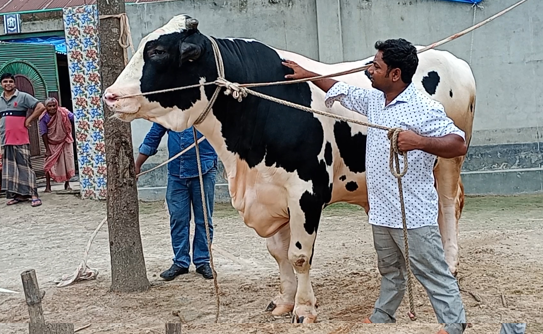 দিনাজপুরের পার্বতীপুর উপজেলার মধ্য দুর্গাপুর গ্রামের আব্দুর রাজ্জাক প্রায় ৫ বছর আগে সখের বসে হলেস্টান ফিজিয়ান জাতের একটি গাভি ক্রয় করে লালন পালন করে আসছেন। সেই গাভির ৩টি বাচ্চার মধ্যে ১টি বাচ্চা এখন দিনাজপুরের রাজা বাবু নামে পরিচিত। যা এবার দিনাজপুরের কুরবানি বাজারের সেরা আকর্ষন। আসন্ন ঈদুল আজহায় কোরবানির জন্য প্রস্তুতকৃত বিশাল সুঠাম দেহের এই ষাঁড়টি দেখতে সাদা-কালো রঙের ষাঁড়টির দৈর্ঘ্য ১০ ফুট, উচ্চতা ৬ ফুট। ওজন ৩৫ মণ অর্থাৎ ১ হাজার ৪০০ কেজি।