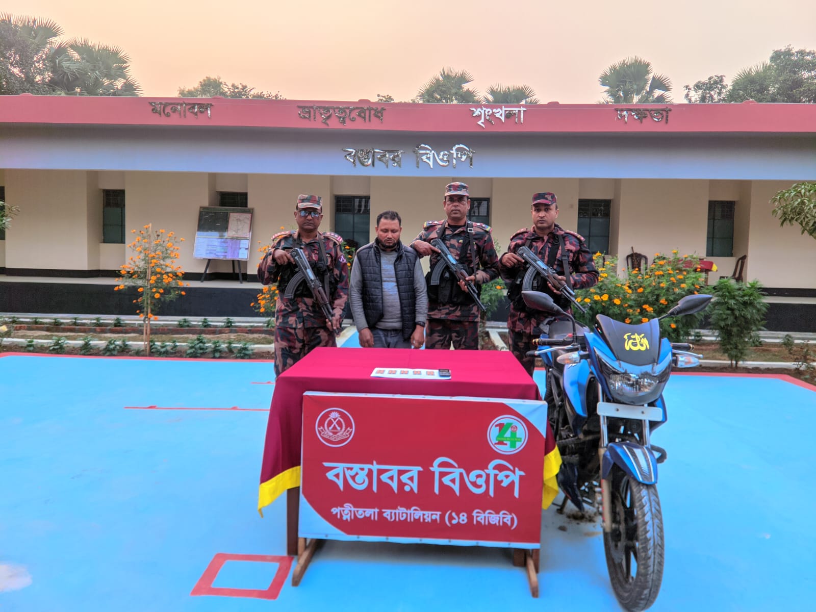 পত্নীতলা ব্যাটালিয়ন (১৪ বিজিবি) সূত্রে জানা যায়, শুক্রবার (২৬ ডিসেম্বর ২০২৫) বিকেল সাড়ে ৫টার দিকে ধামইরহাট উপজেলার বস্তাবর বিওপি’র টহল কমান্ডার সুবেদার মোঃ তৌফিকুল ইসলাম-এর নেতৃত্বে একটি বিশেষ টহল দল সীমান্ত পিলার ২৬৩/৩-এস থেকে আনুমানিক ৩ দশমিক ৫ কিলোমিটার বাংলাদেশের অভ্যন্তরে ভেড়ম এলাকায় অভিযান পরিচালনা করে।