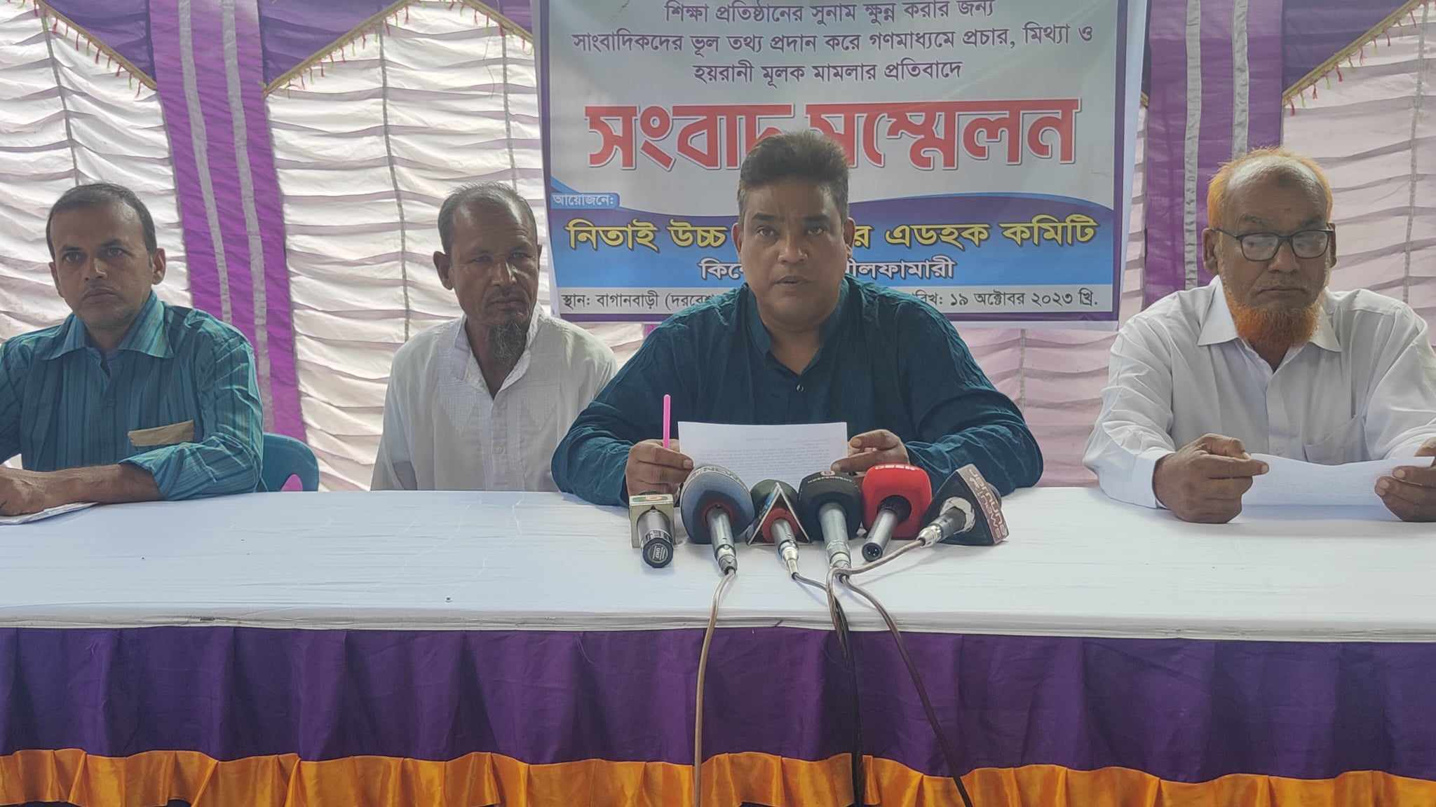 সংবাদ সম্মেলনে বিদ্যালয়টির প্রধান শিক্ষক আব্দুস সালাম, নিতাই ইউনিয়নের সাবেক ইউপি সচিব শাহাজাহান আলী, স্থানীয় বাসিন্দা শওকত হোসেনসহ আরও অনেকে উপস্থিত ছিলেন।