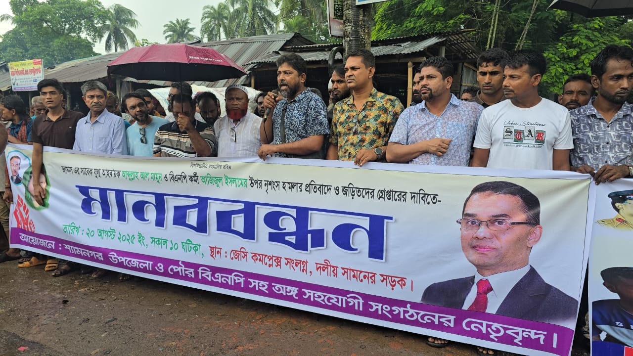 দলীয় কোন্দলের জেরে নেতাকর্মীদের ওপর নৃশংসভাবে হামলা ও “ফ্যাসিস্টের দোসর” বলে অপবাদ দেয়ার প্রতিবাদে মানববন্ধন করেছে শ্যামনগর উপজেলা ও পৌর বিএনপি।