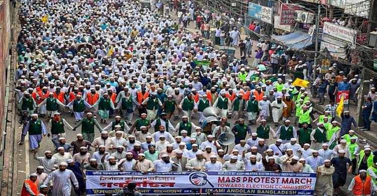 তিনি বলেন, বৃহস্পতিবার প্রতিটি জেলা, প্রতিটি মহানগরে ইসলামী আন্দোলন মিছিল করবে। সরকারের অধীনে কোনো নির্বাচন আমরা মেনে নেব না। আওয়ামী লীগের এই দলদাস কমিশনের অধীনে জনগণ কোনো নির্বাচন দেখতে চায় না।