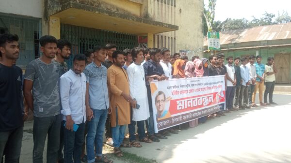 বৃহস্পতিবার সকালে চিলমারী সরকারি কলেজের সচেতন শিক্ষার্থীদের আয়োজনে কলেজ মাঠে ঘণ্টা ব্যাপী মানববন্ধন অনুষ্ঠিত হয়।