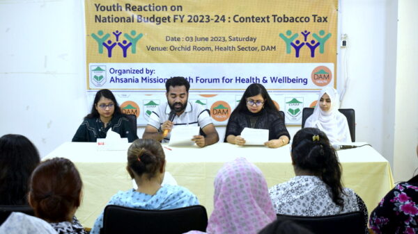 ৩ জুন, শনিবার সকালে রাজধানীর শ্যামলীস্থ ঢাকা আহ্ছানিয়া মিশন স্বাস্থ্য সেক্টরের অর্কিড রুমে আহ্ছানিয়া মিশন ইয়ুথ ফর হেলথ এন্ড ওয়েলবিং আয়োজিত ঘোষিত জাতীয় বাজেটের উপর প্রতিক্রিয়া অনুষ্ঠানে তরুণরা বলেন, বর্তমানে সিগারেটের বাজারে ৭৫ শতাংশই নিম্নস্তরের দখলে যার প্রধান ভোক্তা মূলত দরিদ্র ও তরুণ জনগোষ্ঠী। নিম্নস্তরের শলাকা প্রতি ৫০ পয়সা মূল্যবৃদ্ধি দরিদ্র ও তরুণ জনোগোষ্ঠীকে কোনভাবেই সিগারেটে নিরুৎসাহিত করবে না। কেননা মাথাপিছু আয়বৃদ্ধি এবং মূল্যস্ফীতি বিবেচনায় নিলে প্রকৃত অর্থে সিগারেটের দাম বিগত বছরের তুলনায় কমে গেছে। এতে করে সস্তা সিগারেটের ব্যবহার আশংকাজনক হারে বেড়ে যাবে। এবং তাদের স্বাস্থ্যঝুঁকি আরো বহুগুনে বাড়বে।