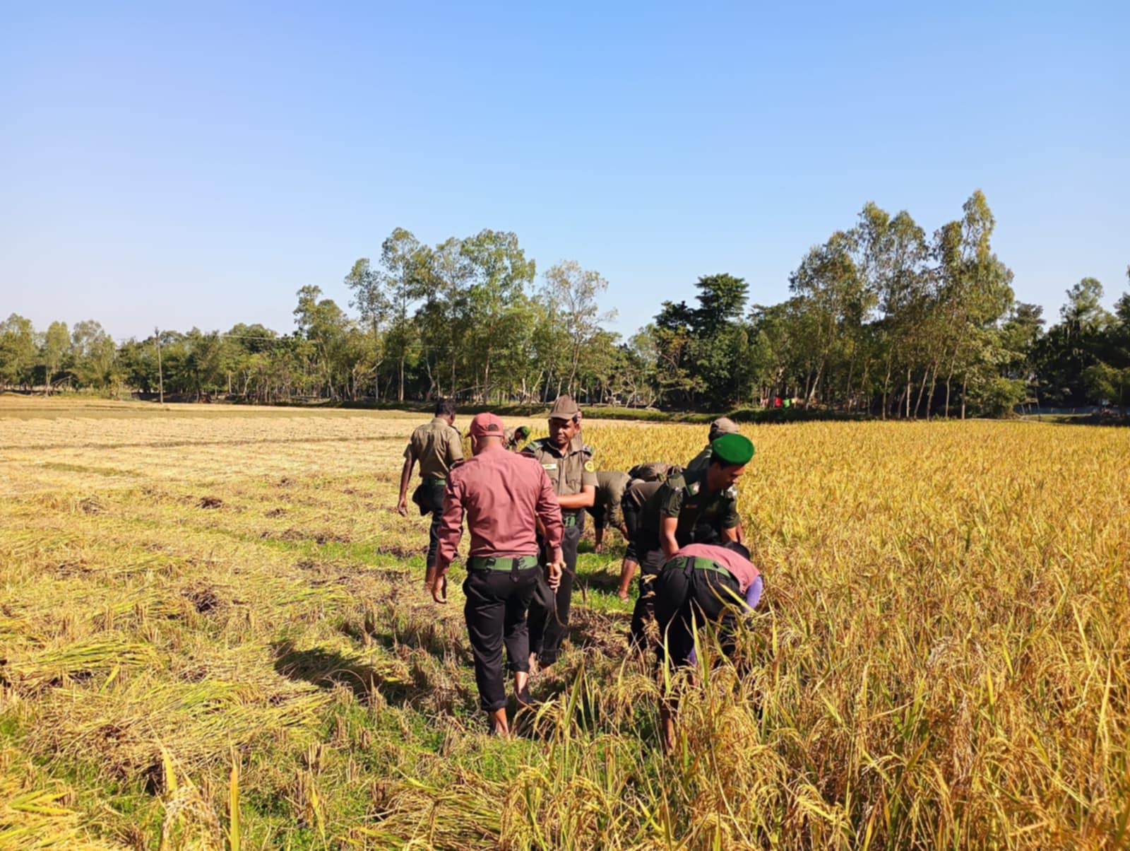 কুড়িগ্রামের ফুলবাড়িতে এক গরীব অসহায় ভিডিপি সদস্যের ৪৮ শতাংশ জমির পাকা ধান কেটে ঘরে তুলে দিল উপজেলা আনসার ও ভিডিপির সদস্যরা ।