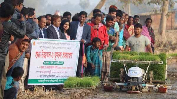 ফুলবাড়ীতে ট্রান্সপ্লান্টার মেশিনের সাহায্যে ধানের চারা রোপন উদ্বোধন