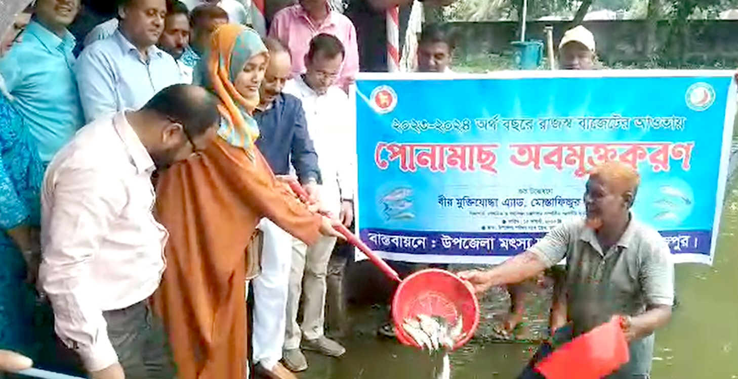 দিনাজপুরের ফুলবাড়ীতে উপজেলা মৎস্য দপ্তরের উদ্যোগে ২০২৩-২০২৪ অর্থ বছরে রাজস্ব বাজেটের আওতায় পোনামাছ অবমুক্তকরণ শুভ উদ্বোধন করা হয়েছে।