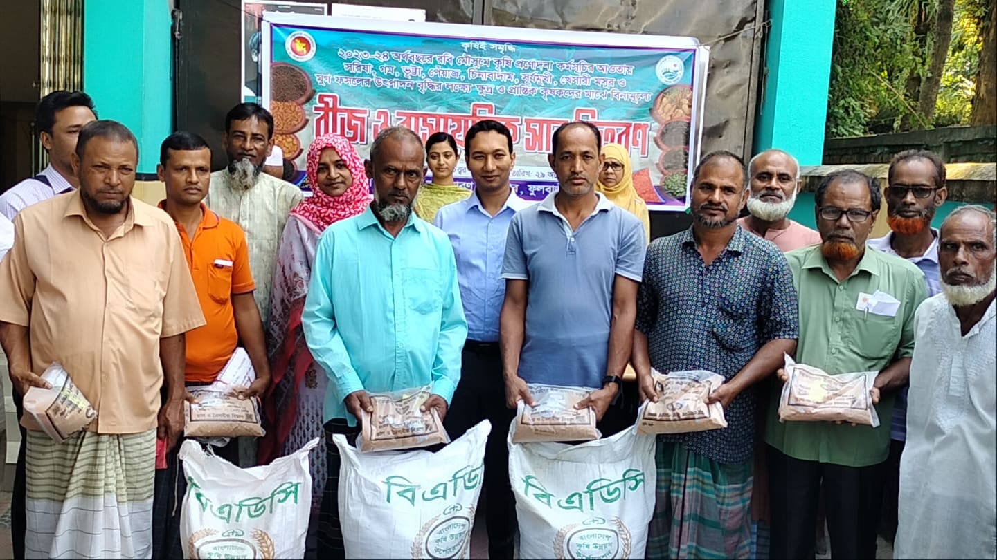 রোববার সকাল ১১ টায় কৃষি সম্প্রসারণ অধিদপ্তর ফুলবাড়ীর আয়োজনে উপজেলা কৃষি অফিস চত্বরে ফুলবাড়ী উপজেলার ছয়টি ইউনিয়নের ৩৮৯৫ জন ক্ষুদ্র ও প্রান্তিক কৃষকের মাঝে এর সার ও বীজ বিতরণ করা হয়।