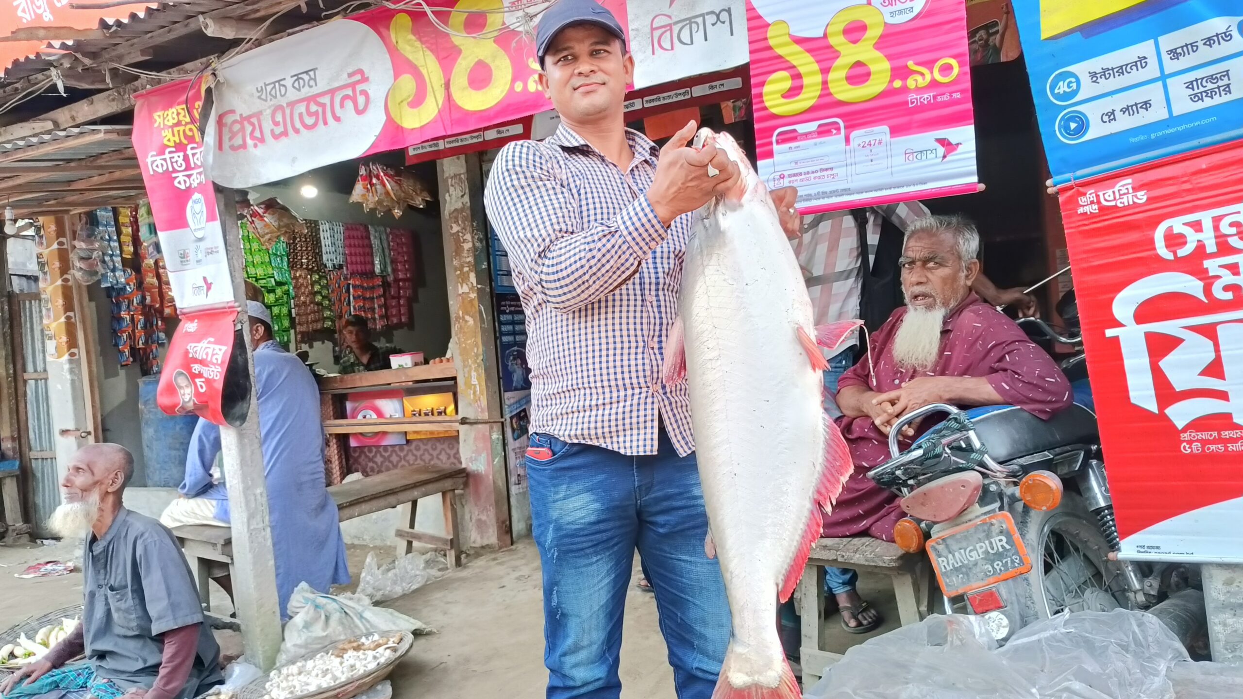 পরে দুপুরে স্থানীয় মাছ ব্যবসায়ী সাজু মিয়া ১৫ কেজি ওজনের পাঙ্গাশ মাছটি ১ হাজার টাকা কেজি দরে কিনে নেন। বর্তমানে তিনি ১২শ টাকা কেজি দরে পাম্পের মোড় বাজারে মাছটি বিক্রি করবেন।