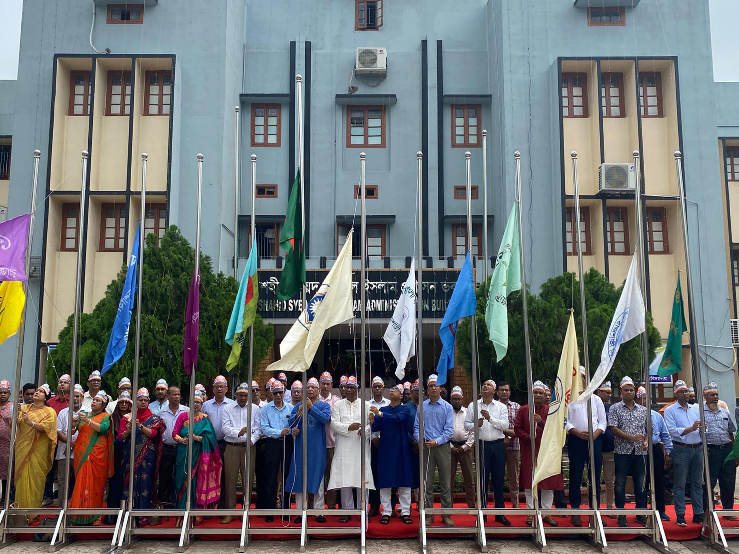 এ উপলক্ষ্যে ‘সাফল্যের সোপানে ৭১ বছর’ শীর্ষক প্রতিপাদ্য নিয়ে আয়োজিত কর্মসূচির শুরুতে সকাল ১০ টায় মিনিটে শহীদ সৈয়দ নজরুল ইসলাম প্রশাসন ভবন চত্বরে সমবেত কণ্ঠে জাতীয় সঙ্গীত পরিবেশনের সাথে উপাচার্য অধ্যাপক গোলাম সাব্বির সাত্তার ও কোষাধ্যক্ষ অধ্যাপক মো. অবায়দুর রহমান প্রামানিক জাতীয় পতাকা উত্তোলন করেন। এসময় প্রতিষ্ঠাবার্ষিকী উদযাপন কমিটির সভাপতি উপ-উপাচার্য (প্রশাসন) অধ্যাপক মো. সুলতান-উল-ইসলাম ও উপ-উপাচার্য (শিক্ষা) অধ্যাপক মো. হুমায়ুন কবীর বিশ্ববিদ্যালয়ের পতাকা এবং প্রাধ্যক্ষবৃন্দ নিজ নিজ হলের পতাকা উত্তোলন করেন। সেখানে ৭১তম প্রতিষ্ঠাবার্ষিকী উপলক্ষ্যে প্রকাশিত স্মরণিকার মোড়ক উন্মোচন করা হয়। এরপর শান্তির প্রতীক সাদা পায়রা ও বর্ণিল বেলুন-ফেস্টুন ওড়ানোর মধ্য দিয়ে উপাচার্য প্রতিষ্ঠাবার্ষিকীর উদ্বোধন ঘোষণা করেন।