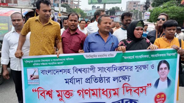 জহির রায়হান কাউনিয়া (রংপুর) প্রতিনিধিঃ-বাংলাদেশ প্রেসক্লাব রংপুর জেলা শাখা কতৃক আয়োজিত বিশ্ব মুক্ত গন মাধ্যম দিবস পালিত হয়েছে। আজ ৩মে বিশ্বমুক্ত গণমাধ্যম দিবস। মুক্ত সাংবাদিকতা ও গণমাধ্যমের দাবিতে প্রতিবছর এই দিনে বিশ্বজুড়ে নানা কর্মসূচির মাধ্যমে দিবসটি পালিত হয়। এ বছর দিবসটির প্রতিপাদ্য ‘মতপ্রকাশের স্বাধীনতা সকল প্রকার মানবাধিকারের চালিকাশক্তি’অন্যান্য দেশের মতো বাংলাদেশেও বিভিন্ন কর্মসূচির মাধ্যমে দিবসটি পালন করা হয়। বিশ্ব মুক্ত গণমাধ্যম দিবস উপলক্ষে দেশের সাংবাদিকরা পেশাগত অধিকার ও মর্যাদা প্রতিষ্ঠা করতে বিভিন্ন কর্মসূচি পালন করেন। বংলাদেশ প্রেসক্লাব রংপুর জেলা শাখা কার্যালয় থেকে সকাল ১১ ঘটিকায় র্যালি বের হয়ে জেলা প্রসাসকের কার্যালয়ের সামনে গিয়ে শেষ হয়। এসময় বক্তব্য রাখেন জেলা শাখার সভাপতি এনামুল হক স্বাধিন, সম্পাদক, রাব্বী,জেলা শখার সহ সভাপতি ও পীরগঞ্জ উপজেলা শাখার সভাপতি আনোয়ার হোসেন, আতিকুর রহমান, প্রচার সম্পাদক এইচ আর বাবু,কাউনিয়া উপজেলা শাখার সভাপতি সারোয়ার আলম, মুকুল, সাধারণ সম্পাদক আব্দুল কুদ্দুস বসুনিয়া, তারগঞ্জ উপজেলা শাখার সভাপতি,সম্পাদক, মহানগর শাখার সভাপতি রোস্তম আলী সরকার এ সময় আরোও উপস্থিত ছিলেন। বাংলাদেশ প্রেসক্লাবের কাউনিয়া উপজেলা শাখার সাংগঠনিক সম্পাদক জহির রায়হান প্রচার সম্পাদক জসিম সরকার,সদস্য সাইফুল ইসলাম প্রমুখ। এসময় বক্তারা বলেন সাংবাদিকতার স্বাধীনতা ও মুক্ত গণমাধ্যম প্রতিষ্ঠার মৌলিক নীতিমালা অনুসরণ, বিশ্বব্যাপী গণমাধ্যমের স্বাধীনতার মূল্যায়ন, স্বাধীনতায় হস্তক্ষেপ প্রতিহত করার শপথ গ্রহণ এবং পেশাগত দায়িত্ব পালনকালে ক্ষতিগ্রস্ত ও জীবনদানকারী সাংবাদিকদের স্মরণ ও তাদের স্মৃতির প্রতি সম্মান ও শ্রদ্ধা জানানো হয়।