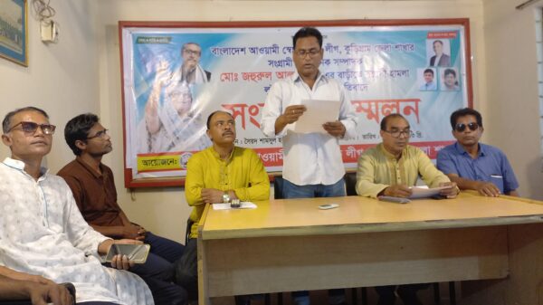 কুড়িগ্রামে জেলা স্বেচ্ছাসেবক লীগের সাংগঠনিক সম্পাদকের বাড়িতে হামলা করে স্বজনদের মারপিটের প্রতিবাদে সংবাদ সম্মেলন ও মানববন্ধন করেছে জেলা স্বেচ্ছাসেবক লীগ। রবিবার দুপুরে কুড়িগ্রাম প্রেসক্লাবের সামনে কুড়িগ্রাম-চিলমারী সড়কে ঘন্টাব্যাপী মানববন্ধন শেষে কুড়িগ্রাম প্রেসক্লাবের সৈয়দ শামসুল হক মিলনায়তনে সংবাদ সম্মেলন অনুষ্ঠিত হয়।