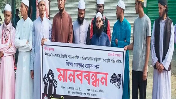 কুড়িগ্রামের চিলমারীতে শিক্ষাক্রম ‘২৩ সংস্কার, বিতর্কিত পাঠ্যক্রম বাতিল ও পাঠ্যক্রম প্রণয়নে জড়িতদের তদন্তপূর্বক শাস্তির দাবিতে ইসলামী ছাত্র আন্দোলন বাংলাদেশ এর উপজেলা শাখার উদ্যোগে মানববন্ধন ও স্মারকলিপি কর্মসূচি অনুষ্ঠিত হয়েছে।