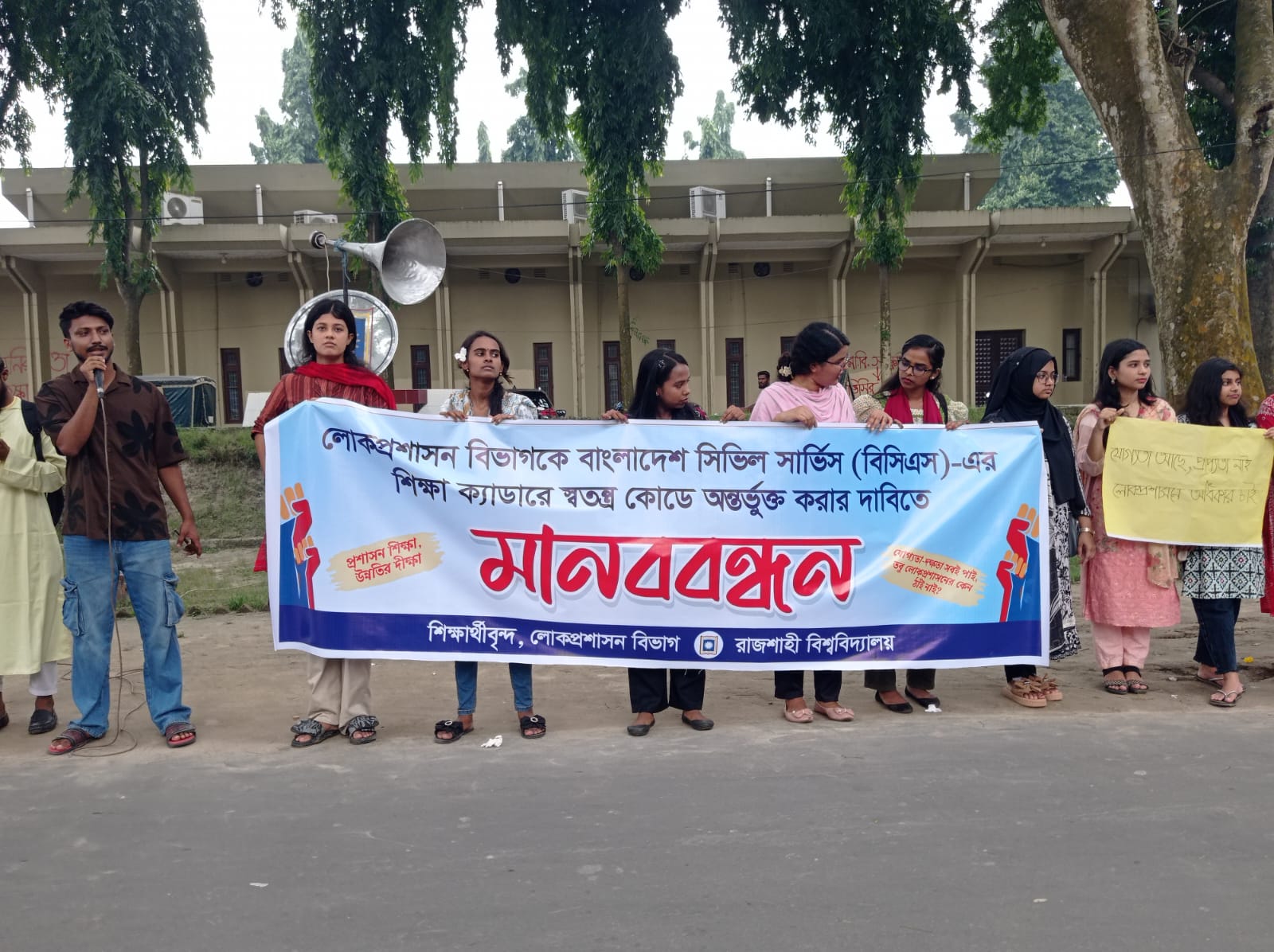 বাংলাদেশ সিভিল সার্ভিস (বিসিএস) এর শিক্ষা ক্যাডারে লোকপ্রশাসন বিভাগকে স্বতন্ত্রভাবে অন্তর্ভুক্ত করার দাবি জানিয়েছে রাজশাহী বিশ্ববিদ্যালয়ের (রাবি) শিক্ষার্থীরা। মঙ্গলবার (১২ আগস্ট) বিকেলে বিশ্ববিদ্যালয়ের প্যারিস রোডে মানববন্ধন কর্মসূচি থেকে তারা এ দাবি জানান।