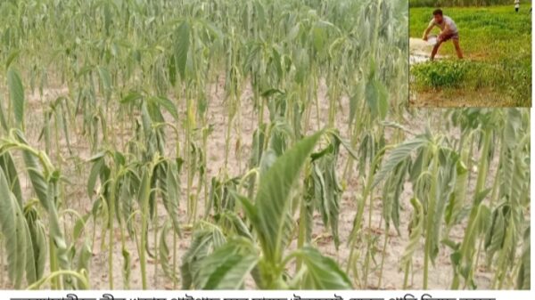 উপজেলার বিভিন্ন এলাকা ঘুরে দেখাগেছে, প্রচণ্ড খরায় জমির মাটি ফেটে যাচ্ছে। পাটগাছ শুকিয়ে মরে যাচ্ছে । তপ্ত রোদ থেকে সোনালী আঁশ বাঁচাতে বাধ্য হয়ে জমিতে সেচ দিচ্ছেন কৃষক। কেউ পাটক্ষেতে নিড়ানি দিচ্ছেন, আবার কেউ সেচ দেওয়ার পরে জমিতে সার দিচ্ছেন।