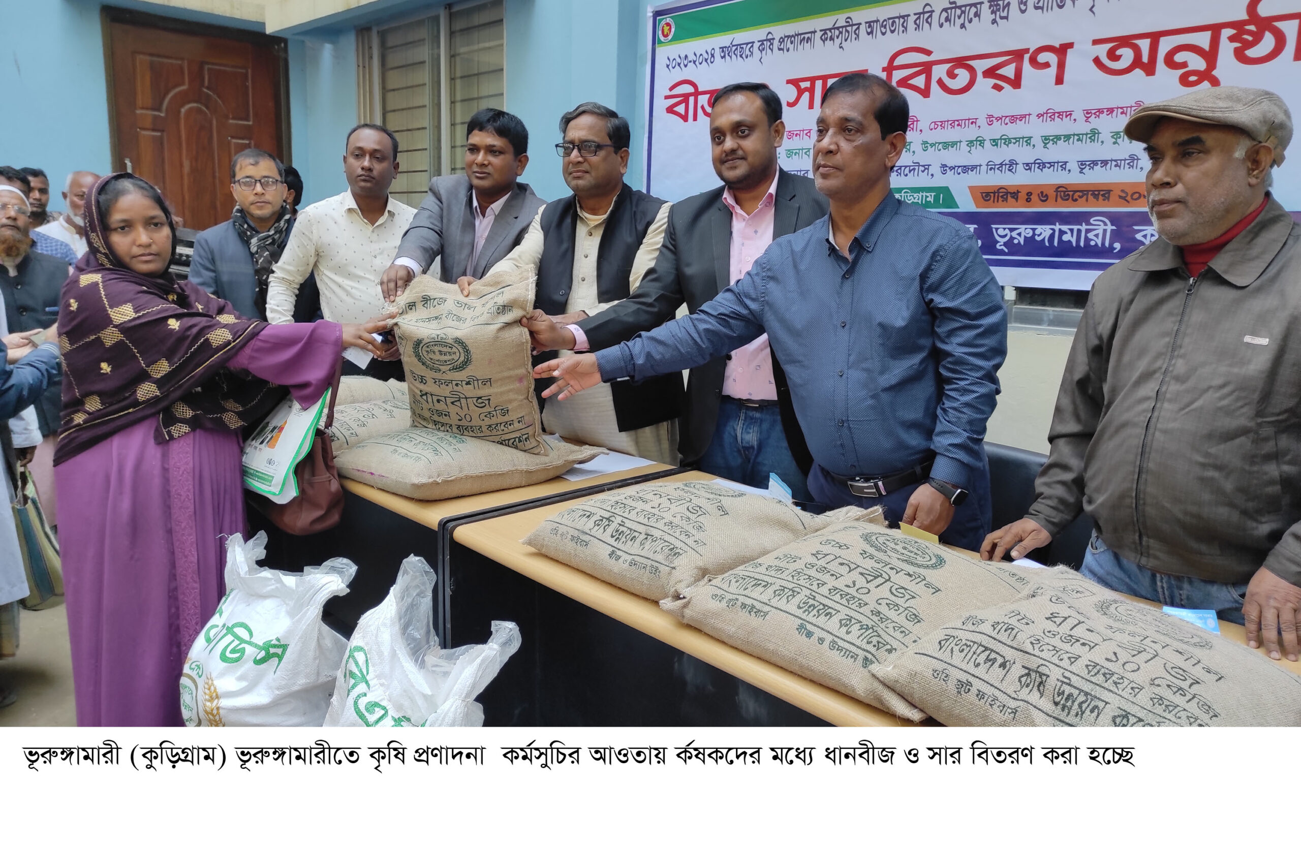 কুড়িগ্রামের ভূরুঙ্গামারী ও ফুলবাড়ীতে চলতি রবি মৌসুমে কৃষি প্রণোদনা কর্মসুচির আওতায় কৃষকদের মাঝে উন্নতজাতের বোরো ধান বীজ ও সার বিতরণ করা হয়েছে।