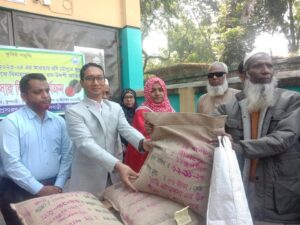 উল্লেখ্য উপজেলার ১০টি ইউনিয়নে ৫ হাজার ৮শত কৃষকের মাঝে জন প্রতি ৫ কেজি ধান বীজ, ও ২০ কেজি সার বিতরণ করা হয়।