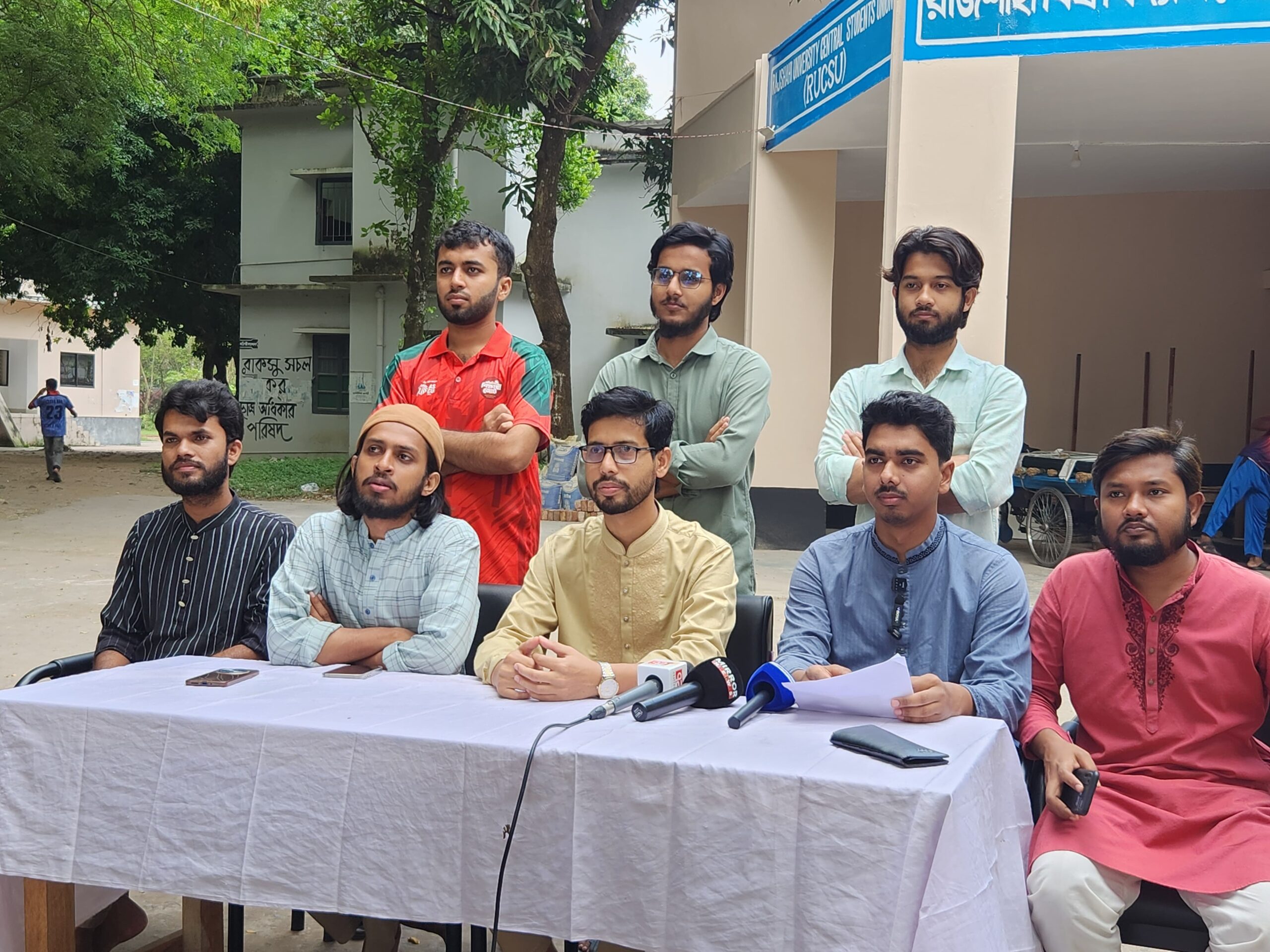 আজ বুধবার (৫ নভেম্বর) দুপুর ১২:০০ টার দিকে বিশ্ববিদ্যালয়ের রাকসু ভবনের সামনে এই সংবাদ সম্মেলনের আয়োজন করা হয়। সংবাদ সম্মেলনে উপস্থিত ছিলেন রাকসু সহ -সভাপতি মোস্তাকুর রহমান জাহিদ, জিএস সালাউদ্দিন আম্মার, এজিএস সালমান সাব্বির সহ অন্যান্য সদস্যরা।
