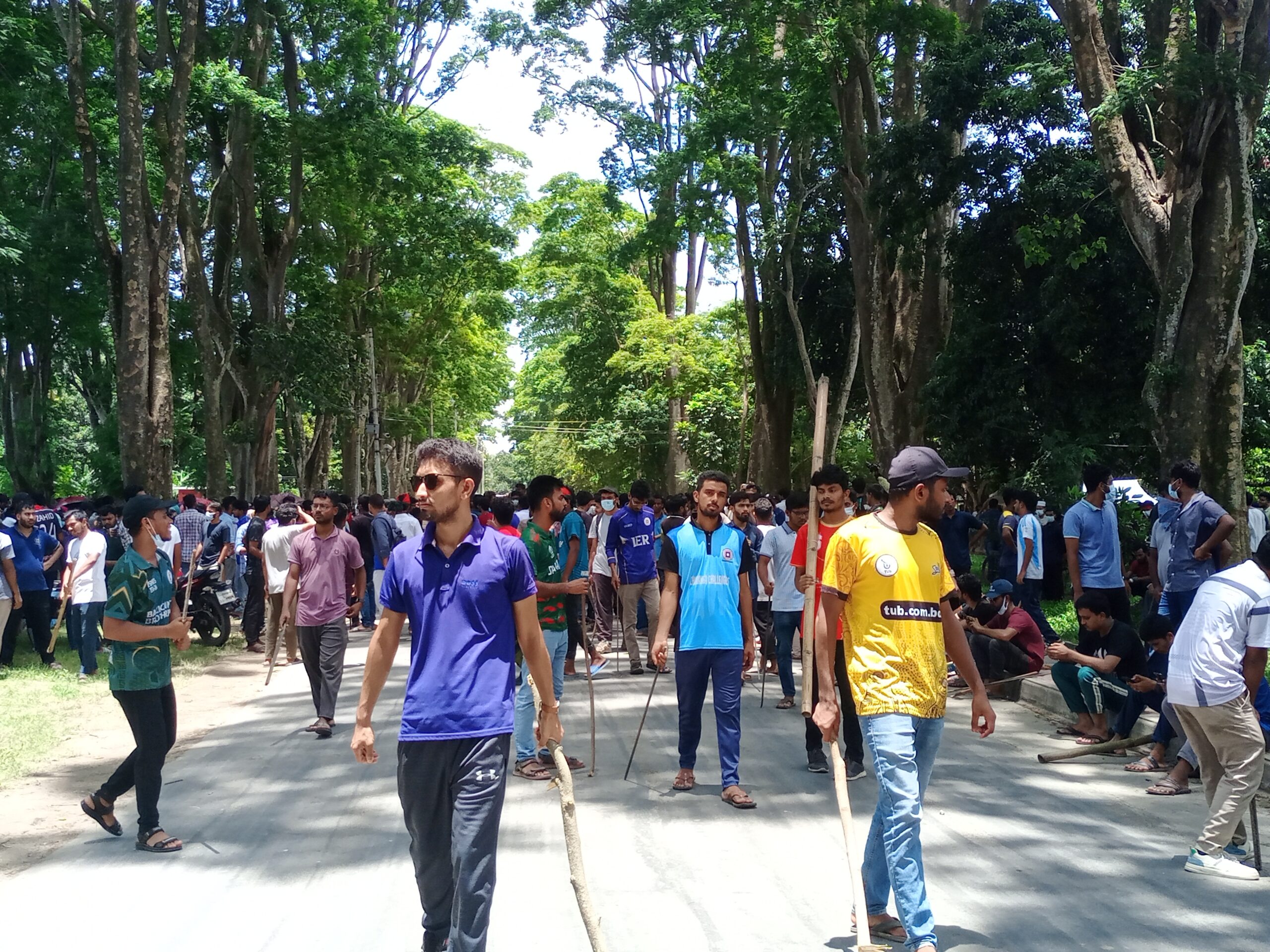 এর আগে, গতকাল বিক্ষোভ মিছিলের মধ্যে আন্দোলনকারীদের একটি অংশ হলগুলোতে ছাত্রলীগের কক্ষে তল্লাশি চালিয়ে পিস্তলসহ বিপুল পরিমাণ অস্ত্র উদ্ধার করেন। বিক্ষুব্ধ শিক্ষার্থীরা নেতাদের কক্ষ ভাঙচুর ও জিনিসপত্রে অগ্নি সংযোগ করেন। আন্দোলন ত্যাগের পূর্বে বিশ্ববিদ্যালয় প্রশাসনের নিকট অস্ত্র জমা দেন তারা। একই সঙ্গে ক্যাম্পাসে সন্ত্রাসী কর্মকাণ্ডে জড়িতদের শাস্তি এবং হলগুলোতে ছাত্র রাজনীতি নিষিদ্ধের দাবি জানানো হয়।
