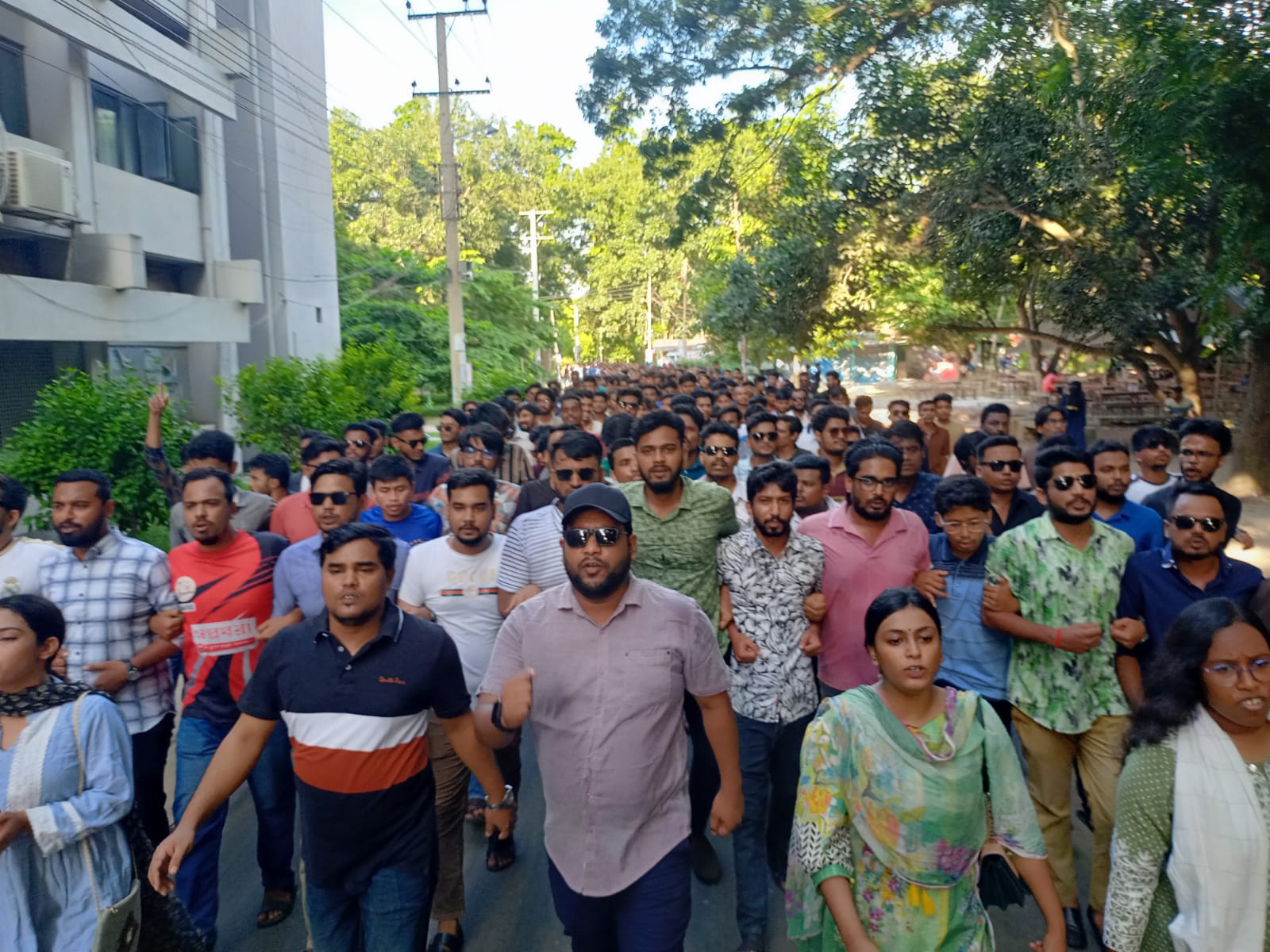এর আগে, পূর্ব ঘোষণা অনুযায়ী বিকেল সাড়ে চারটা থেকে দলীয় টেন্টে জড়ো হতে থাকেন বিভিন্ন ইউনিটের নেতাকর্মীরা। বিকেল পাঁচটার দিকে একটি বিক্ষোভ মিছিল নিয়ে ক্যাম্পাসের গুরুত্বপূর্ণ সড়ক প্রদক্ষিণ করে আবার দলীয় টেন্টে এসে জড়ো হয় সবাই। সেখানে সংক্ষিপ্ত সমাবেশে শাখা ছাত্রলীগের সভাপতি ও সাধারণ সম্পাদক ছাড়াও বক্তব্য দেন সাংগঠনিক সম্পাদক কাইয়ূম মিয়া। এসময় শাখা ছাত্রলীগের বিভিন্ন ইউনিটের দুই শতাধিক শিক্ষার্থী উপস্থিত ছিলেন।