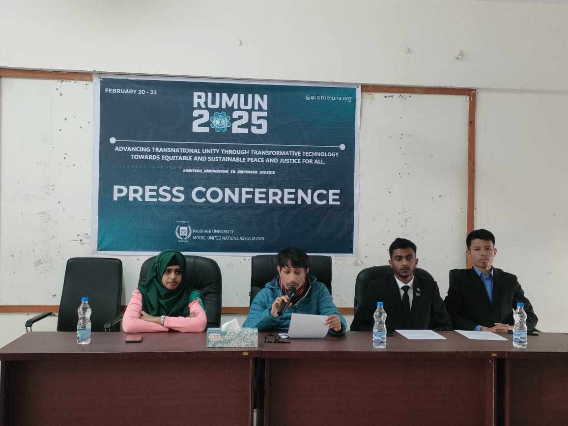 সমতা, টেকসই শান্তি ও সার্বজনীন ন্যায়ের লক্ষ্যে প্রযুক্তিগত রূপান্তরের মাধ্যমে আন্তঃদেশীয় ঐক্যের উন্নয়ন প্রতিপাদ্যকে কেন্দ্র করে রাজশাহী বিশ্ববিদ্যালয় ছায়া জাতিসংঘ সংস্থা (আরইউমুনা) সূচনা করতে যাচ্ছে “রাজশাহী বিশ্ববিদ্যালয় ছায়া জাতিসংঘ সম্মেলন ২০২৫”। আগামী ২০ থেকে ২৩ ফেব্রুয়ারী জাতিসংঘের প্রকৃতি ও নিয়মতন্ত্রের আদলে আরইউমুনার তত্ত্বাবধানে পরিচালিত হবে এই ৪ দিনব্যাপী সম্মেলনের ৮ম সংস্করণ।